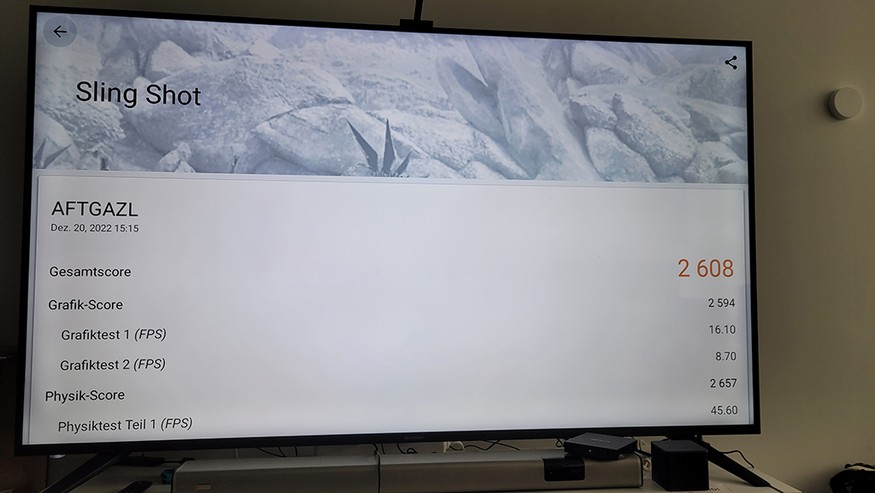 Mit dieser Ausstattung bietet die Set-Top-Box für die gängigen Anwendungsfälle mehr als eine ausreichende Performance. Zu keinem Zeitpunkt kam es zu irgendwelchen Rucklern, wie man sie bei einfachen Streaming-Sticks in Kauf nehmen muss. Die Benchmark-Ergebnisse zeigen zudem, dass Fire TV Cube 2022 deutlich mehr Leistungsreserven bietet als die ebenfalls in diesem Herbst erschienene Nokia Streaming Box 8010 (Testbericht). Im Geekbench erreicht sie Werte von 279 im Single-Core- und 712 im Multi-Core-Test, während die neue Streaming-Box von Nokia nur auf 147 und 454 Punkte in diesen Tests kommt. Auch im 3D-Bereich ist Fire TV Cube 2022 mit einem Wert im Sling-Shot-Test (3D Mark) von 2608 der Nokia mit 590 deutlich überlegen. Das wird auch durch den Vulkan-Test (Geekbench) mit Werten von 1368 für Fire TV und 381 für die Nokia bestätigt.