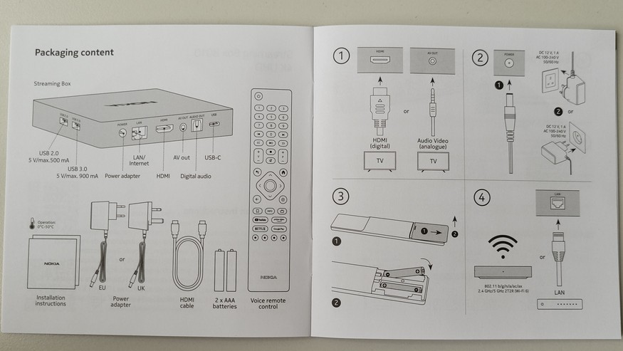 Ansonsten ist die Bedienung der Streaming-Box einfach und selbst erklärend. Während Anwender bei der Verwendung von Streaming-Sticks den ein oder anderen Ruckler beim Durchblättern der Menüs oder Wartezeiten beim Start von Apps akzeptieren müssen, gibt die Nokia Streaming Box 8010 in dieser Hinsicht keinen Anlass zu Kritik. Die Bedienung ist flüssig und der Start von Streaming-Apps erfolgt zügig. Auch die Übertragung von Inhalten vom Smartphone gelingt ohne Wartepause. 4K-Inhalte mit 60 fps zeigt die Nokia Streaming Box 8010 problemlos an, ohne dass dabei einzelne Frames ausgelassen werden. Die Darstellungsqualität ist optimal.