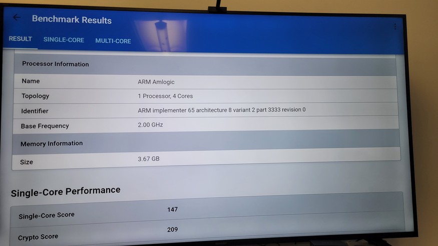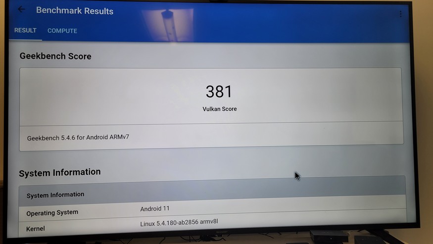 Auch die Geekbench-Ergebnisse mit Version 5.4.6 fallen mit 147 Punkten im Single-Core- und 454 Punkte im Multi-Core-Test nicht besonders hoch aus. Amazons Fire Cube 2022 kommt hier auf 279 (Single) und 712 Punkte (Multi). Last but not least zeigt auch der Vulkan-Test mit einem Wert von 381, dass die Nokia Streaming Box 8010 nicht primär für anspruchsvolle 3D-Spiele entwickelt wurde.
