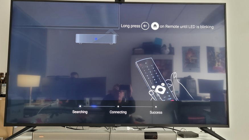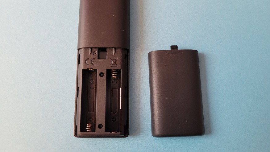 Die mitgelieferte Bluetooth-Fernbedienung fällt mit einer Länge von 20 cm und einer Breite von 4,1 cm relativ groß aus. Dafür bietet sie neben den üblichen Tasten wie Lauter/Leise und Kanalwechsel noch ein numerisches Tastenfeld sowie Tasten für Youtube, Netflix, Prime Video und Google Play. Auch eine Taste zur Aktivierung des Google Assistant ist vorhanden. Über ein fünfsekündiges Drücken der OK-Taste können Anwender die Hintergrundbeleuchtung für die Tasten einschalten. Diese sind in dunklen Umgebungen dann leicht zu erkennen. Die Fernbedienung bietet zudem ein Mikrofon und unterstützt damit Spracheingaben, die vom Google Assistant verarbeitet werden.